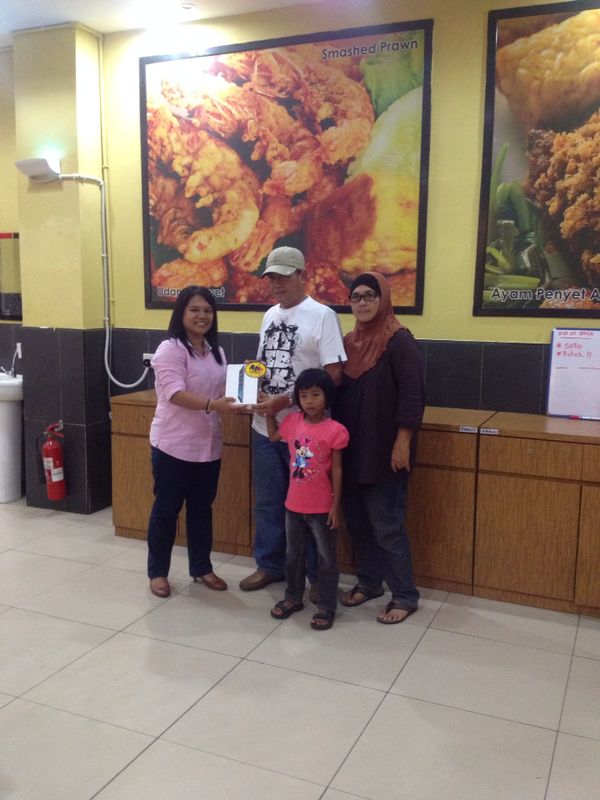 Chef Penyet :)April 21, 2014Blog, Promotions1 comment Congrats to some of our ipad mini lucky draw winners! Thanks for the support! Chef Penyet :)Related ArticlesOpening now @ Nu Sentral KLAyam Penyet AP Grand opening @ Mydin Mall USJ SubangOpening now @ Aeon Big Klang One thought on “Congrats to our ipad mini lucky draw winners!” Abdul Qawiy 8 Jul 2014 at 2:20 pm hi Reply Leave a comment Cancel replyYour email address will not be published. Required fields are marked * Δ
